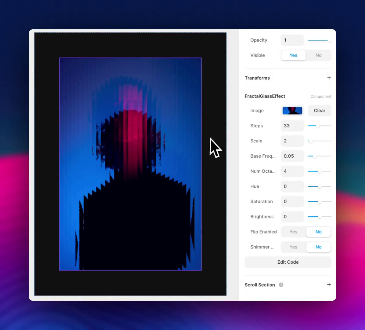 A creative and playful component for Framer. It allows you to apply glass effect on any images in your canvas! Original idea by Pablo Stanley - Codepen (MIT Licence) Ported to Framer by Fred Moon π Live Preview https://labs.framer.wiki/fractal-glass-effect π Updates Stay updated with more free components and new templates by following me on Twitter: twitter.com/fw3d π¨ My templates Hero Carousel: a mind-blowing display of scroll effects thatβs fun and budget-friendly!Polygon: a playful scroll experience with interactive elements π€ Hire Me Need help setting up my templates or my free components? Hire me for additional Framer support, reach out on Twitter twitter.com/fw3d or by email at [email protected].