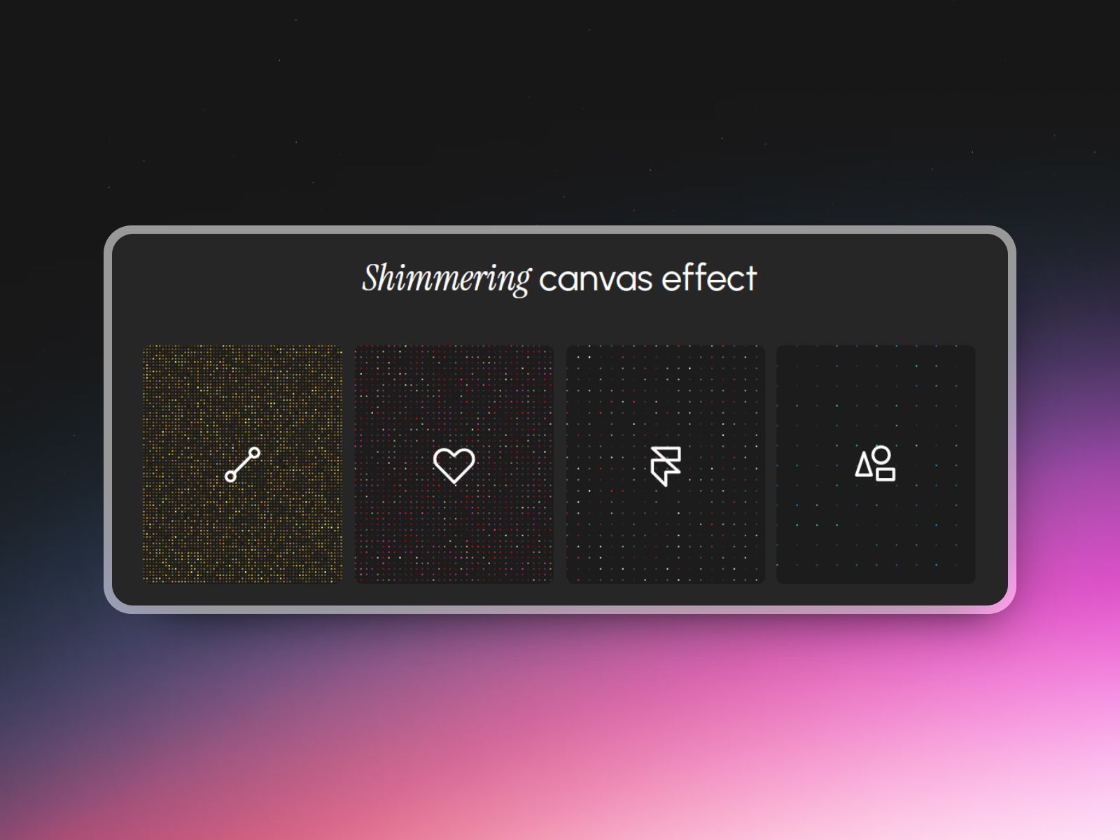 NEW! Get Access to All Components β You can now purchase a lifetime access to all my components. More information here. Shimmering Effect β A creative and playful component for Framer β allowing you to create a shimmering effect directly in Framer. Ported to Framer by Fred Moon π Live Preview https://shimmer-canvas-preview.framer.ai/ π Updates Stay updated with more free components and new templates by following me on Twitter: twitter.com/fw3d π¨ My templates Hero Carousel: a mind-blowing display of scroll effects thatβs fun and budget-friendly!Polygon: a playful scroll experience with interactive elements π€ Hire Me Need help setting up my templates or my free components? Hire me for additional Framer support, reach out on Twitter twitter.com/fw3d or by email at [email protected]. Refund Policy Due to the nature of digital products, all sales are final and refunds cannot be provided. Please review all product details carefully before purchasing.